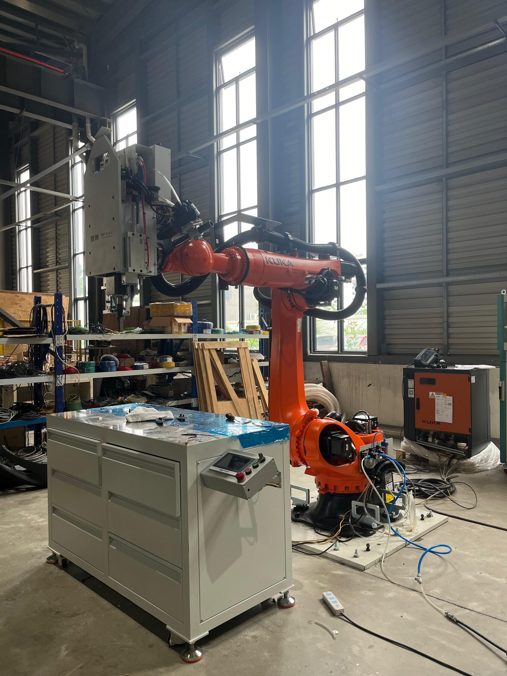 В подобные ячейки легко проводится интеграция KUKA в УЗ-процессы: робот-манипулятор оснащается ультразвуковой головкой (сонотродом) от ведущих производителей (Branson, MP-Sonic и др.), превращаясь в гибкий инструмент для сварки сложных форм.